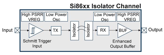 支持外部系統信號(Si8605、Si8606)的單向隔離通道